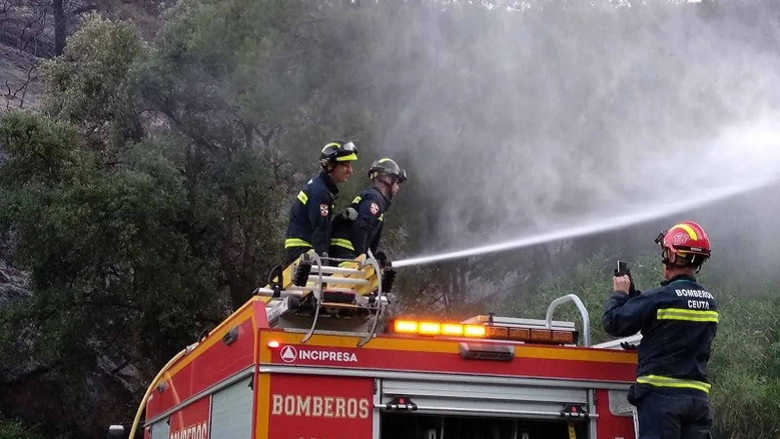 Varias dotaciones de bomberos se encuentran ahora mismo en García Aldave intentado sofocar las llamas del incendio que, por razones que se investigan, se ha reavivado a primera hora de esta tarde. Cabe destacar que el incendio que tuvo lugar ayer fue el más importante de la historia de Ceuta, con una estimación de unas 60 o 64 hectáreas el área que ha resultado calcinada tras el grave incendio que estalló este sábado a las 14.00 horas. El fuego arrasó toda la zona entre el Mirador de Isabel II y el Serrallo.