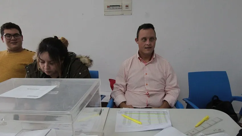 Una de las imágenes del día la proporciona Ismael García Mohamed, usuario de Plena Inclusión con discapacidad intelectual. A Ismael le avisaron que le correspondía estar de vocal en una mesa y está cumpliendo con su obligación como un ciudadano más. Ismael ocupa el puesto de primer vocal en una mesa electoral del local social de Loma Colmenar. Su madre va y viene de la casa que está cerca para atender las cuestiones de los periodistas o a prepararle un bocadillo a su hijo para comer. No puede negar lo orgullosa que está de Ismael porque “no se ha equivocado ni una vez, tiene que tachar los números que le van diciendo y él lo hace ayudándose con su regla”.