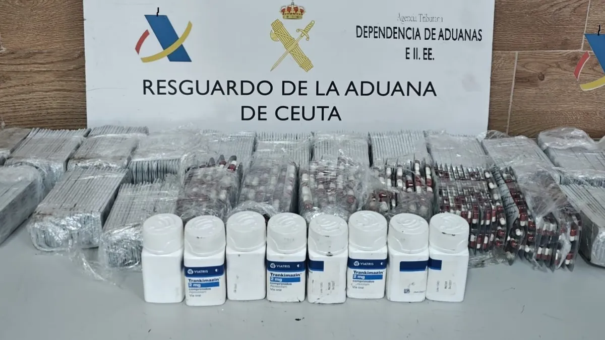 Durante la inspección realizada, los agentes hallaron oculto en los huecos naturales de las puertas delanteras del vehículo un total de 11.597 comprimidos. De ellos, 8.820 correspondían al medicamento denominado Clonazepam, 1.573 a Alprazolam y 1.204 a Pregabalina.