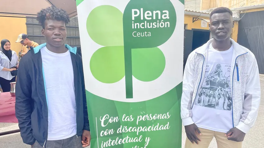 El ritmo de los tambores daba la bienvenida este jueves al cruzar la puerta principal de las instalaciones de Plena Inclusión, en Juan Carlos I. La entidad colocó carpas en el exterior de su sede para resguardar las mesas de picoteo del ardiente sol del mediodía. A su alrededor, decenas de hombres y mujeres bailaban al compás de la percusión y se sorteaban los turnos para fotografiarse tras el photocall elaborado por los usuarios de la entidad organizadora de la jornada de convivencia que reunió a personas con discapacidad intelectual y a residentes del Centro de Estancia Temporal de Inmigrantes (CETI).
