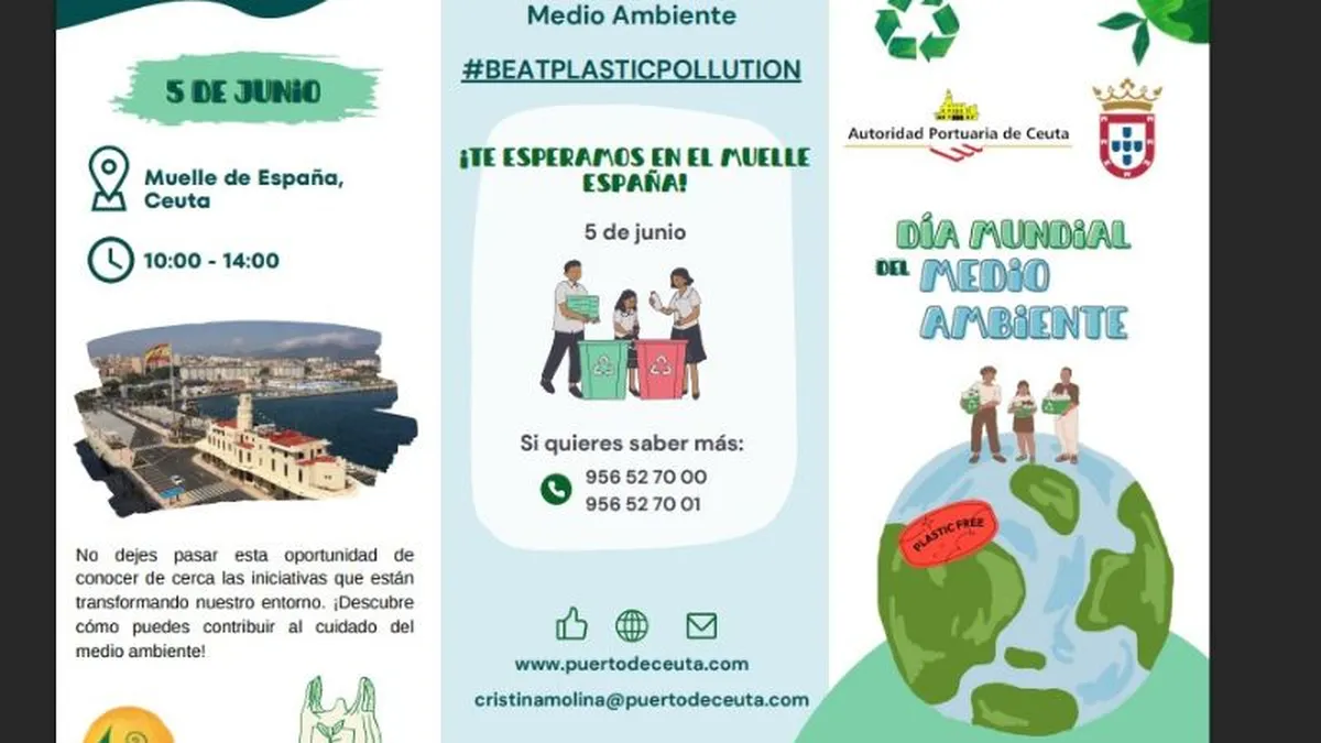 El Muelle de España va a convertirse este jueves 5 de junio en el epicentro de la acción medioambiental en Ceuta con la celebración de una jornada divulgativa organizada por la Autoridad Portuaria y la Consejería de Fomento, Medio Ambiente y Servicios Urbanos con motivo del Día Mundial del Medio Ambiente. Bajo el lema internacional #BeatPlasticPollution, la cita propone un recorrido por las principales iniciativas que se desarrollan en la ciudad autónoma en favor de la sostenibilidad y la conservación de su entorno natural.