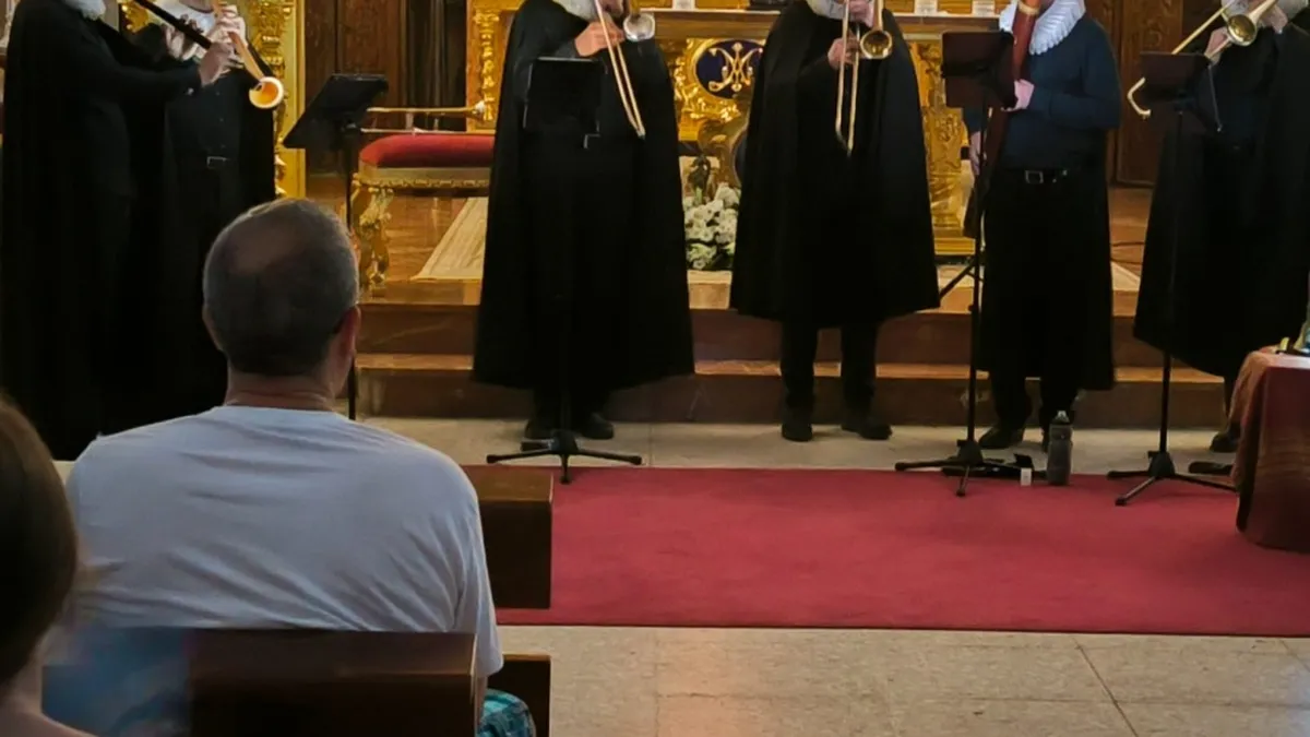 Con una buena presencia de feligreses y ciudadanos que quisieron presenciar este concierto en pleno corazón de Ceuta, se puso en escena las músicas en torno a la liturgia del Corpus Christi, siendo interpretado por el reconocido septeto Ministriles Hispalensis.