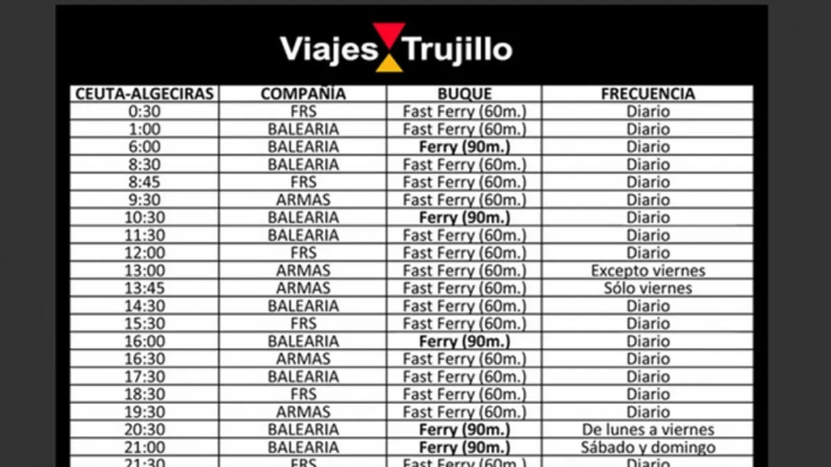 El Pueblo de Ceuta ha puesto a disposición de sus lectores los horarios de las navieras que operan en la ruta marítima entre Ceuta y Algeciras.
