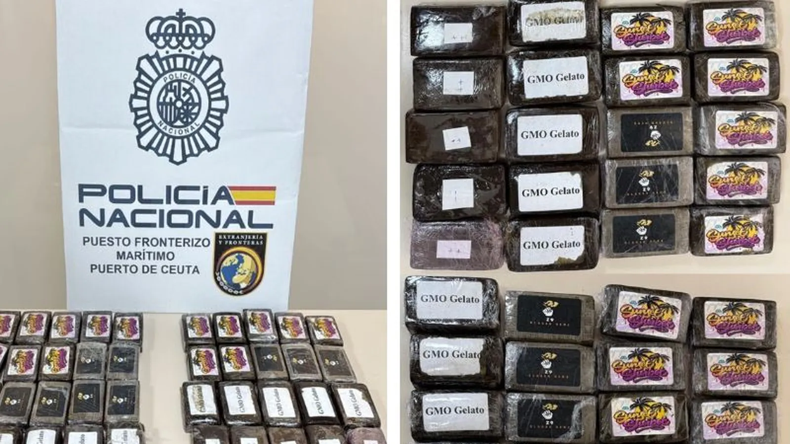 Allí hallaron un total de 40 placas de hachís —20 por persona— ocultas bajo la ropa y sujetas al cuerpo con vendajes, principalmente en la zona de los tobillos, rodillas y cintura. El peso total de la droga incautada asciende a 4 kilos.