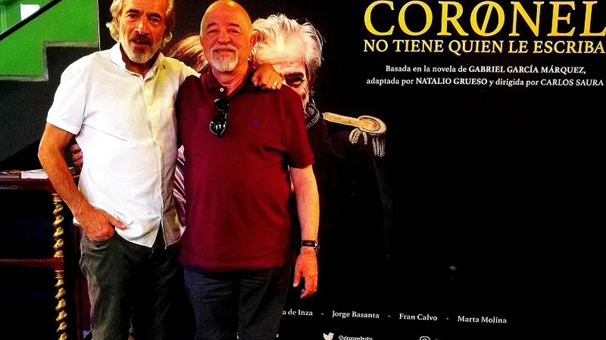Posteriormente se licenció, se fue de Ceuta y luego me enteré que iba a estrenar en Madrid "Retrato de dama con perrito" de Luis Riaza y quiero recordar que en el reparto estaban Socorro Anadón y Berta Riaza. Estuve en la función y antes y después con él. Me invitó a cenar en un restaurante cercano al teatro y allí fui testigo de cómo dos productores fueron a buscarle para contratarle para su primera película. Ya no lo volví a ver más hasta hace algo menos de dos años cuando estaba poniendo en Madrid "El coronel no tiene quien le escriba" Y después de ver la función con mi nieto lo esperamos en el hall del teatro y allí estuvimos rememorando nuestras ilusiones frustradas. (La fotografía es de ese día)