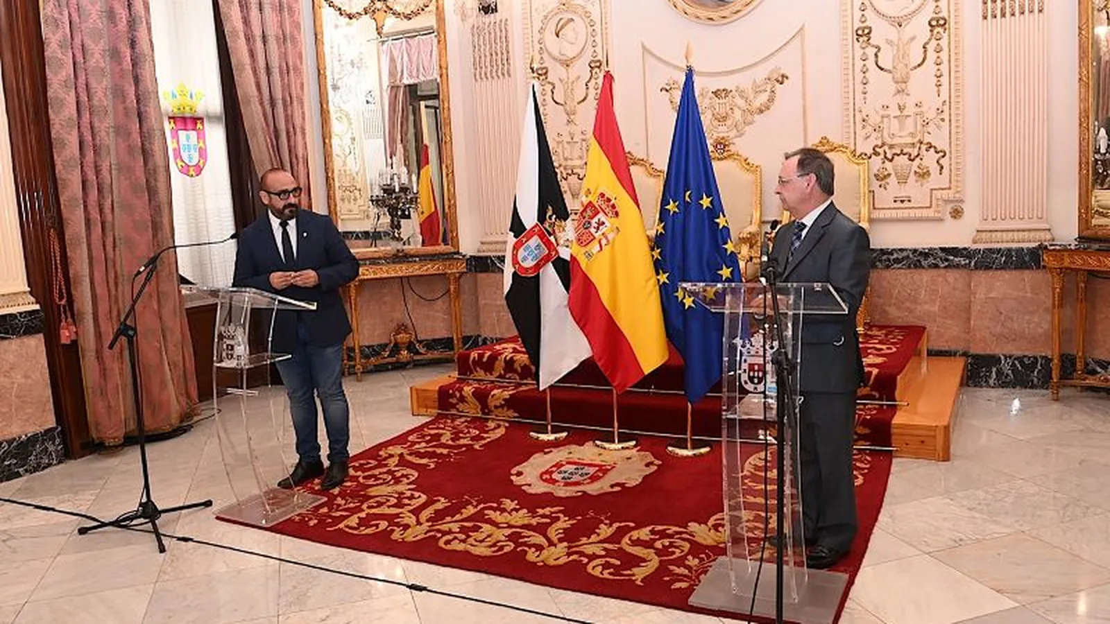 El presidente de la Ciudad Autónoma de Ceuta, Juan Vivas, ha comparecido en la mañana de este lunes, día 19 de julio, en el Salón del Trono del Palacio de la Asamblea, junto al eurodiputado de Ciudadanos, Jordi Cañas, que ha realizado una visita oficial a Ceuta tras los acontecimientos acaecidos los días 17 y 18 de mayo cuando entraron miles de personas extranjeras procedentes de Marruecos provocando una importante crisis humanitaria en la frontera sur de Europa.