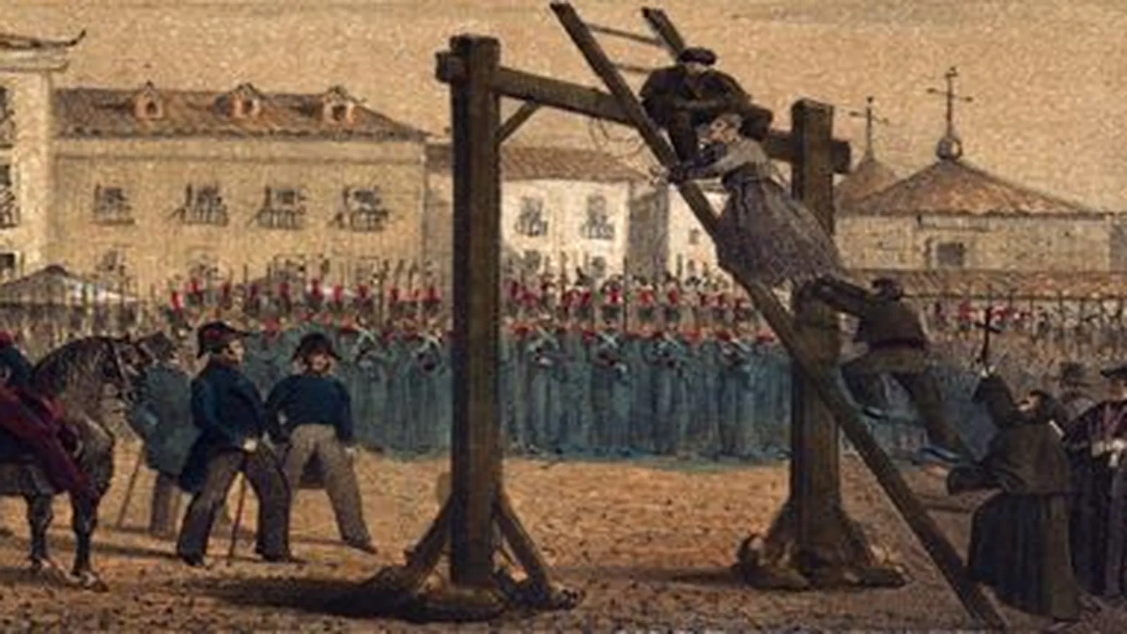 Los procesos se actuaban con tanta rapidez y atropellamiento que acusado en Madrid Juan de la Torre de haber gritado la tarde del 22 de marzo viva la libertad fue ahorcado el 29. Abierta en el correo una carta que el librero don Antonio Miyar, vecino de la corte, escribía a un expatriado español lamentándose de las proscripciones que asolaban el reino, formósele causa y espiró colgado del afrentoso patíbulo el 11 de abril. Un magistrado pundonoroso clamó en la misma capital de la monarquía contra aquel sangriento proceder, y el príncipe lo desnudó al punto de la toga, mostrando con esta medida a los otros jueces que lo que se quería era sangre. Amanecieron esparcidas por las calles de Madrid dos o tres veces tarjetas con letreros subversivos; y registrada la casa de don Tomás de la Chica, y encontradas algunas que se parecían a las primeras, la sal de alcaldes de Casa y Corte, vendida a Calomarde, fulmino contra el reo la pena de horca, donde acabo sus días la Chica el 29 de julio. (Historia de la vida y reinado de Fernando VII de España, Tomo III, en sus páginas 349-350)