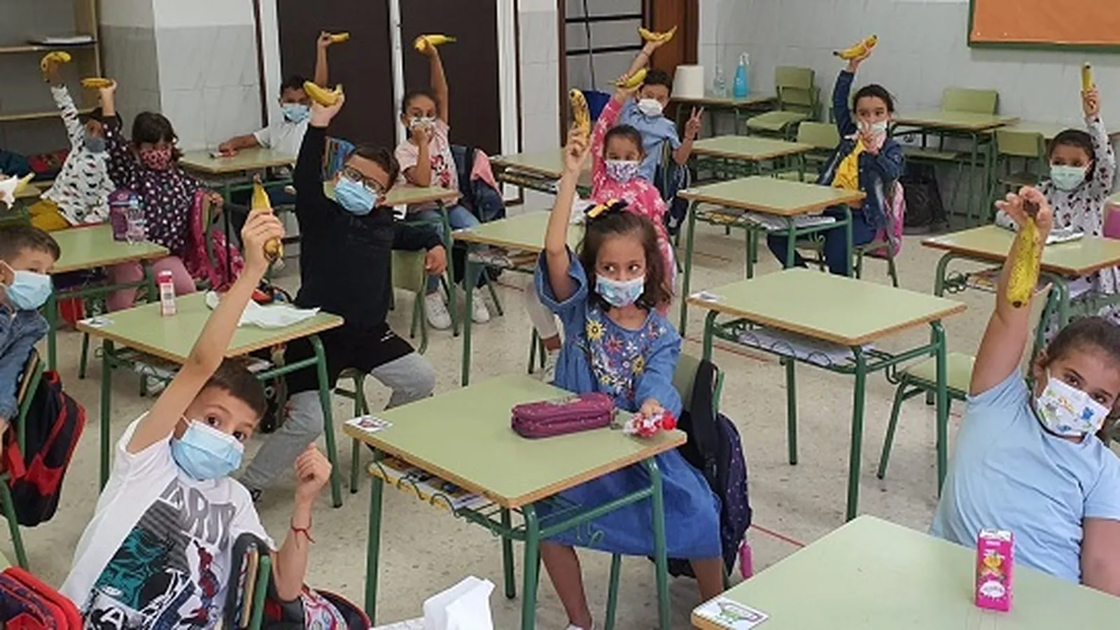 El CEIP Juan Carlos I ha participado este viernes en la campaña ‘Un plátano por la Palma’, llenando de amarillo sus aulas en solidaridad con los afectados por la crisis volcánica en la isla canaria.