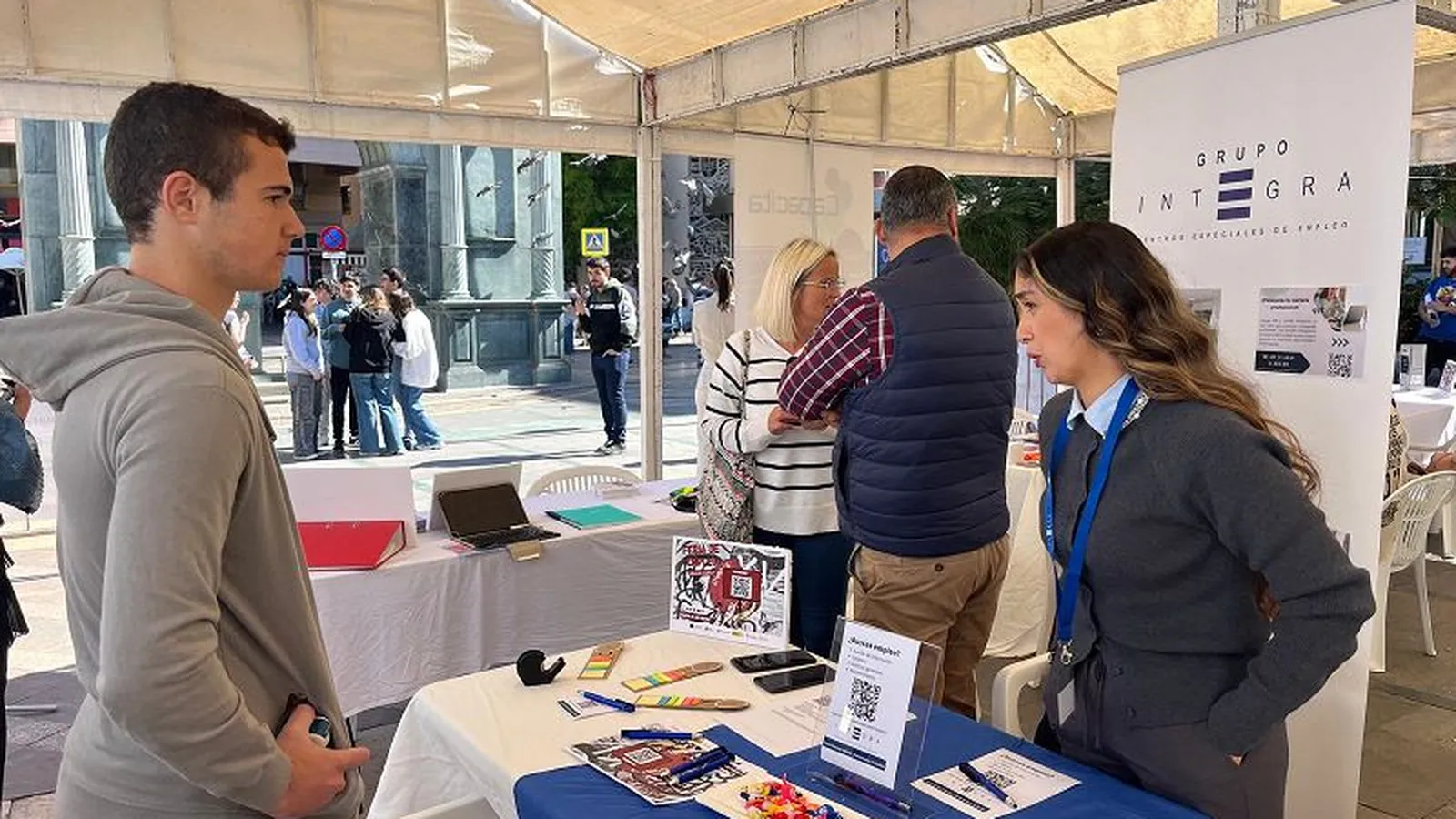 Este grupo no dudó en instalar su stand en dicha Plaza para captar candidatos interesados. La técnico de la Unidad de Apoyo y Selección de la Empresa Grupo Integra, Laila Abdeselam, puso de manifiesto que, actualmente, “cuentan con dos servicios activos en Ceuta, el de servicio de limpieza y el de auxiliar de control de acceso”, a lo que añadió que en estos momentos, “tienen activas dos ofertas de empleo para el sector de limpieza, destinadas principalmente a personas con discapacidad”, ya que el Grupo Integra es un centro especial de empleo destinado a la inserción laboral de las personas con discapacidad.