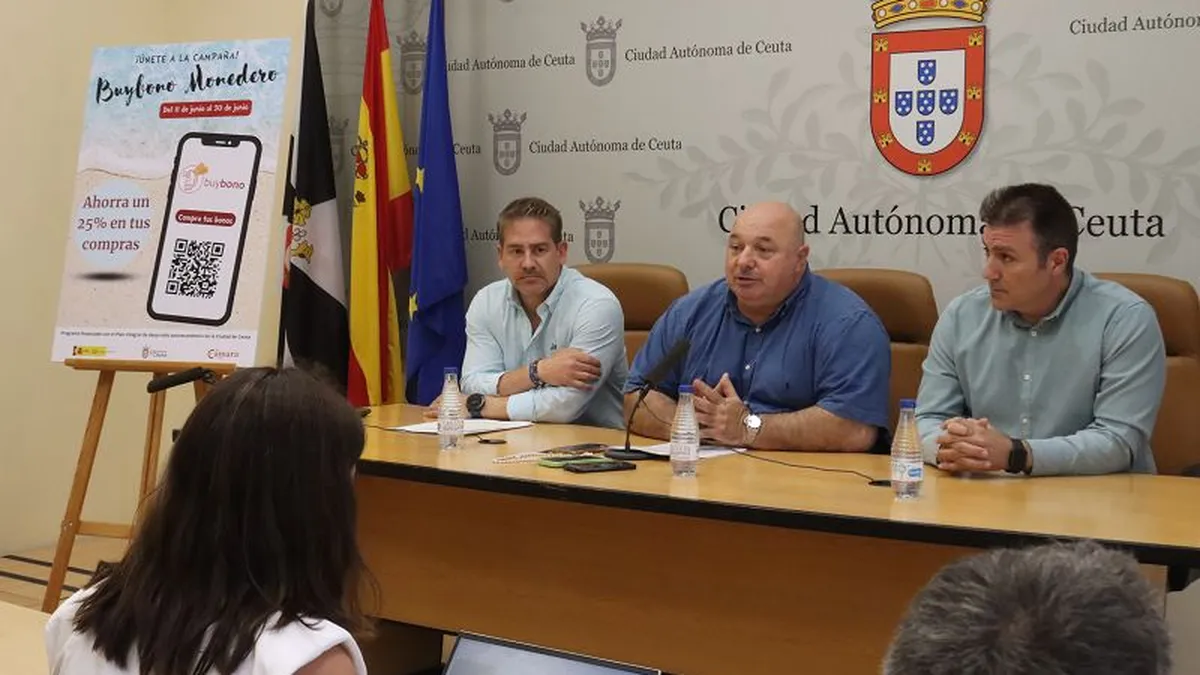 El consejero de Comercio, Turismo, Empleo y Deportes, Nicola Cecchi, acompañado por el presidente de la Cámara de Comercio de Ceuta, Karim Bulaix, presentó este martes, 11 de junio, concretamente a las 13:00 horas en la Sala de Prensa del Palacio de la Asamblea, una nueva edición del programa ‘buybonos’ para incentivar el comercio local.